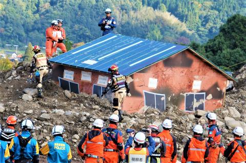 大規模災害等が発生し、被災地の消防機関だけでは対処できない場合、全国の消防本部(局)や航空隊が被災地に出動し、人命救助等の消防活動を実施します。