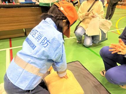 子どもたちに、消防の仕事に魅力を感じてもらうとともに、将来の職業選択の参考としてもらうため、消防隊員や救急隊員の体験をしてもらいました。
